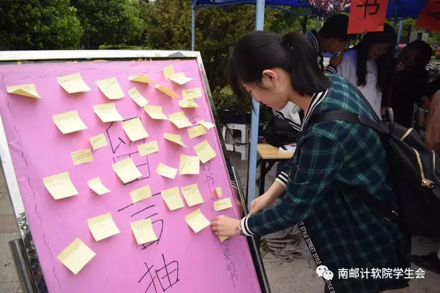 活动内容新颖有趣,外场鲜艳的海报和有趣的抽奖环节吸引了我校各院同学的驻足流连。同学们积极参与留言抽奖活动,竞相在留言板上写下自己喜爱的图书的短评,外场弥漫着浓浓的书香气。同学们在外场积极报名后续的“书之羁旅”主题活动,弥补了错过网上报名的遗憾。现场气氛热烈。