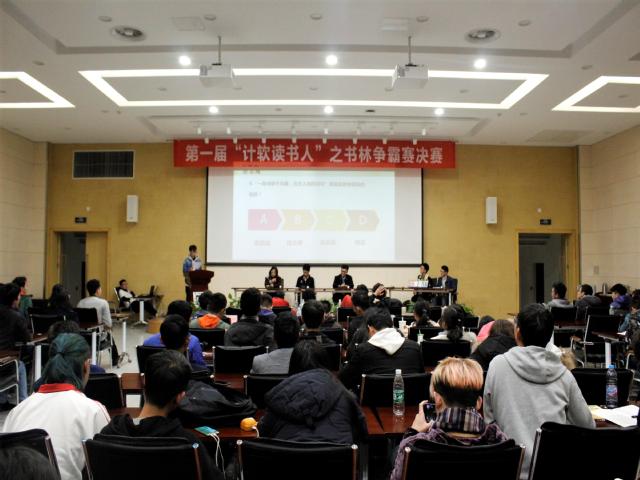 “书林争霸”半决赛及决赛于计算机学科楼报告厅火热开赛,在初赛中脱颖而出的6位同学上演了一场更为激烈的角逐。出席本次比赛的评委有计软网安院分团委学生会主席周赟豪、副主席王蒙、副主席王怡铃以及常务副秘书长吴姗妮。