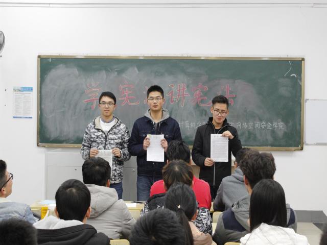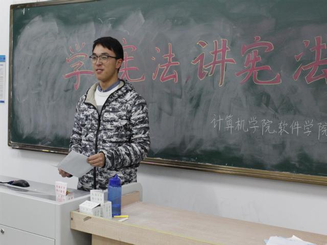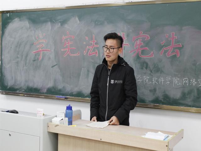 上午七点,宪法诵读活动在教三106准时开始,全体参会学生代表有序就座,并拿出宪法章程笔记。会议现场严肃而又庄重,全体同学起立,朗读宪法部分章节。同学们在一条条朗读内容中深入学习了宪法。诵读结束后,学院邀请到在“我眼中的宪法”系列征文活动中获得优胜的同学来到现场朗读了自己的优秀征文,并与同学们分享了自己对宪法的理解与践行。他们从“学宪法讲宪法”总决赛的节目展开,联系生活实例,阐释宪法精神和重要性,分享了自己的学习感悟,强调了认真学习宪法,做学法、知法、守法、用法的计软好青年的重要性。参会学生深有感触,受益匪浅。会议最后,获得征文优胜的同学们合影留念。