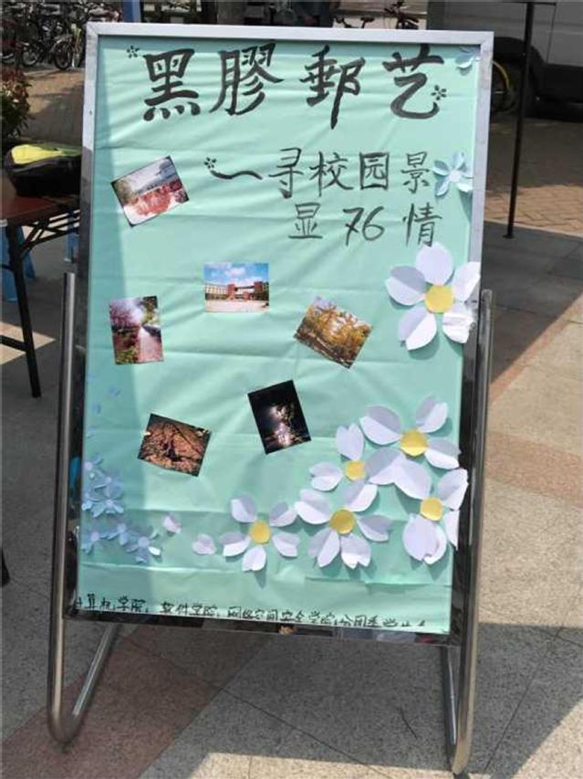 “以素生彩,情满邮园”,在白纸邮情活动中,许多学子拿起画笔,在南邮大门风景轮廓图上涂鸦、勾勒,为自己心目中的南邮上色,很快,原本空洞的画纸就变得丰富多彩起来。“寻校园景,显76情”,再看黑胶邮意活动,分为线上征集和外场展示两部分,在校庆月期间同学们踏遍校园,寻找与“76”相关的景点,合影投稿。一张张南邮的风景照片,一份份学习生活的珍贵回忆,引发了同学们许多美好的回忆。