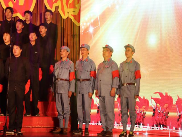 五四表彰的圆满结束拉开了合唱比赛的序幕,本次合唱大赛中我院合唱团队第二个出场。伴随着一阵欢呼与掌声,我院精心准备的合唱表演《跟着共产党走》登场,用铿锵有力的誓言表达我院学子爱国爱党的热情和奋发进取的决心,给评委留下深刻印象。在第一小节结束后,两位舞蹈演员以精湛的舞技和传神的感染力,向我们展示了妻子送丈夫从军的感人场面。我院季小健书记、章韵副院长、何海洋副书记、黄海平副院长在此时登台,与红军新兵握手,并向台下敬礼,表达对党的尊敬与赞美,巧妙加入合唱表演。合唱最后,同学们举起手中的黄花与红花,为五四青年节献礼。在我院全体师生的共同努力下,我院合唱团队最终获得了三等奖。校团委李晓华书记、王小露副书记、教务处彭国香副处长、人事处黄一鸣副处长进行了颁奖。
