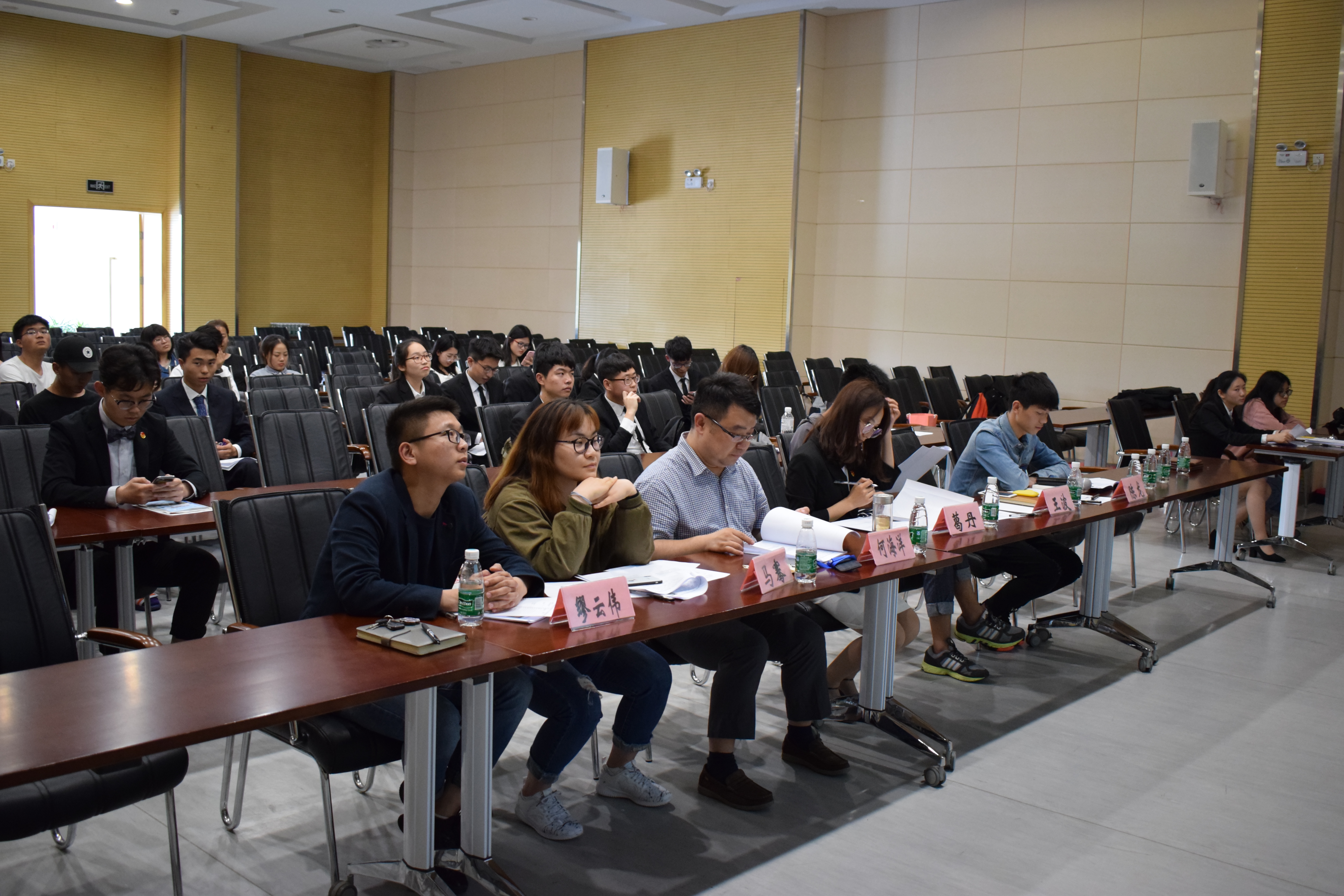 莅临本次会议的领导老师有何海洋副书记,分团委书记葛丹老师,2015级辅导员马骞老师,王波老师,2016级辅导员陈龙老师,2017级辅导员缪云伟老师。到场的主席团成员分别是分团委学生会主席兼秘书长周赟豪,常务副秘书长吴姗妮,副主席王蒙和副主席王怡铃。