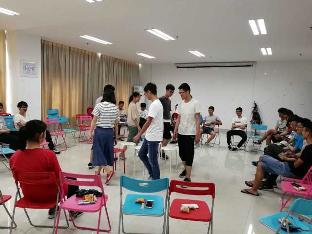班会伊始,主持人组织同学们进行了两轮破冰小游戏。第一轮,抢凳子。在背景音乐的配合下,同学们围着凳子转着圈儿,音乐一停即抢凳子,紧张而有趣。场上男同学们的表现尤为出色,他们充分发扬了谦让的绅士精神,令人敬佩。此轮游戏出局的同学为大家演唱了《迪迦奥特曼》主题曲《奇迹再现》,歌声动人,曲风优美。第二轮,传动作猜词。本轮有两组同学,第一组同学拿到的词是“蹦迪”,第二组词是“表演”,在同学们“出神入化”的表演与模仿下,场边爆笑不断,但非常遗憾的是,负责猜词的同学均未猜出正确答案。此轮游戏中表现较差的两位同学上演了“高难度撕纸”动作,默契而又精彩的表演让同学们欢呼雀跃。
