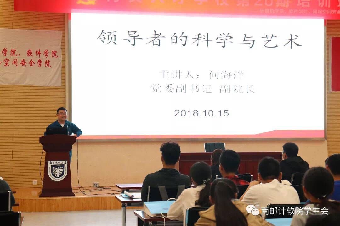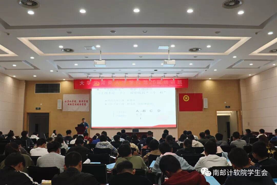 2018年10月15日下午,由bd手机版官网登录ios 、半岛app应用 、半岛电子官网 承办的南京邮电大学第26期菁英人才培训班开班仪式于计算机学科楼报告厅顺利举行。院党委副书记、副院长何海洋老师,2015级辅导员王波老师、马骞老师,2016级辅导员陈龙老师,2018级辅导员王晶老师出席了本次开班仪式,院分团委书记葛丹老师担任主持。