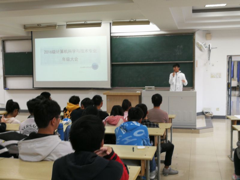 2018年10月26日下午4点,我院2016级计算机科学与技术专业年级大会在教三201顺利召开,会议由2016级计科辅导员陈龙老师主持,全体2016级计科学生参加了本次大会。