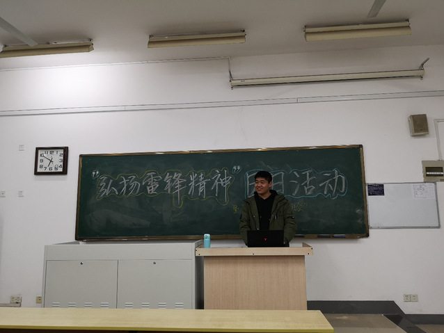 班会开始,班长首先发表了关于校园跑活动、兵役登记、易班读书活动、学业情况解析的讲话并强调了学习手册中的各项重要内容。随后,同学们观看雷锋生平纪录片与新时代雷锋故事影片,然后依次上台分享身边的“雷锋事迹”。