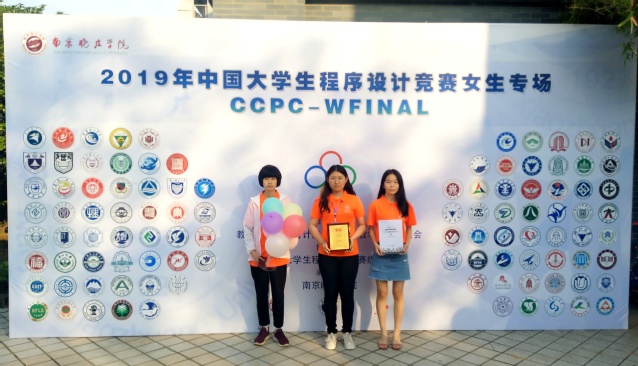 6月2日,2019年中国大学生程序设计竞赛(CCPC)女生专场赛在南京晓庄学院落下帷幕。我院学生和通信与信息工程学院、电子与光学工程学院、微电子学院、物联网学院学生组成的女生代表队获得金奖1项、银奖2项、铜奖1项,其中我院2015级学生张佩迎、刘玉亭和柯芷莹组成的“沉迷打铁不能自拔”代表队荣获金奖,这是我校学生首次获得CCPC女生专场赛的最高等级奖项。
