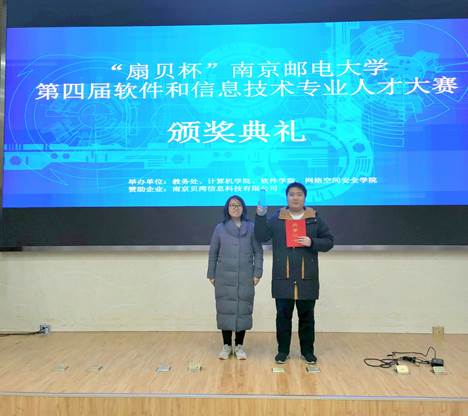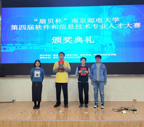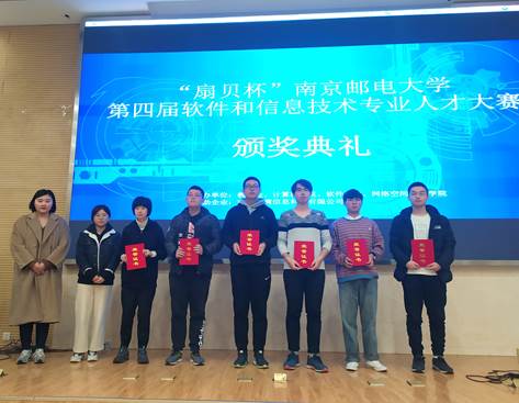 12月1日,“扇贝杯”南京邮电大学第四届软件和信息技术专业人才大赛在南邮仙林校区计算中心圆满落下帷幕。南京贝湾信息科技有限公司(扇贝)人事行政部门负责人高欢女士,人事经理刘文婧女士、易巧女士,项目组负责人、我院校友窦孝晨女士,项目组技术负责人、我校校友田恒博先生等出席本次大赛颁奖典礼并为获奖选手颁奖。
