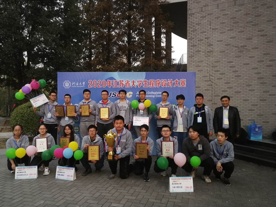 11月15日,2020年江苏省大学生程序设计大赛在河海大学落下帷幕。我院学生陈天和贝尔英才学院何乐晗、陈以信等同学组成的代表队荣获冠军,这是我校首次获得该项赛事冠军。我院学生祁佳怡、刘嘉怡和物联网学院学生张怡静等同学组成的代表队荣获最佳女队奖。