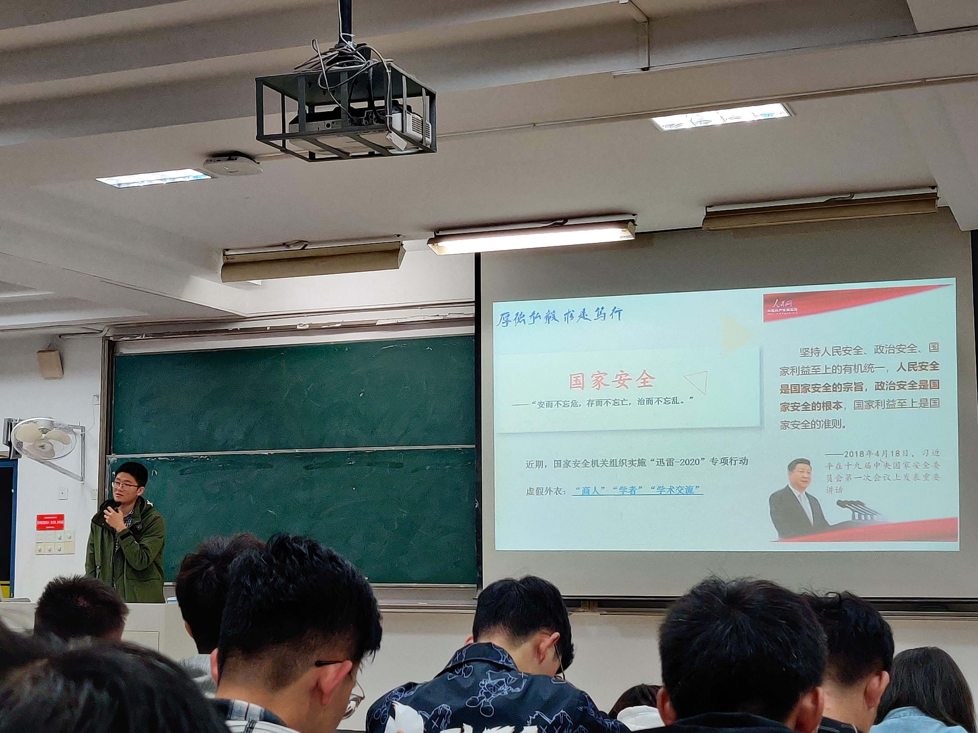 本次年级大会,李逸轩老师从国家意识形态安全、校园消防安全、网络信息安全、食品安全、疫情防控安全和秋季卫生健康、心理健康安全等几个方面,结合近期社会发生的实际案例,对同学们进行了安全主题教育;组织同学们观看了“迅雷-2020”专项行动,国家安全教育相关视频,提醒同学们在日常生活中注意食品安全和宿舍用电安全;心理健康方面,向大家介绍了基本的自我调节方法和学校的心理咨询中心的相关情况,希望同学们能学会自我调节,在必要时能正视问题,积极主动寻求帮助。年级大会还进行了学业情况的分析和大学生创新创业训练计划的介绍。