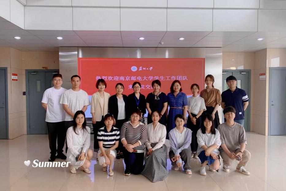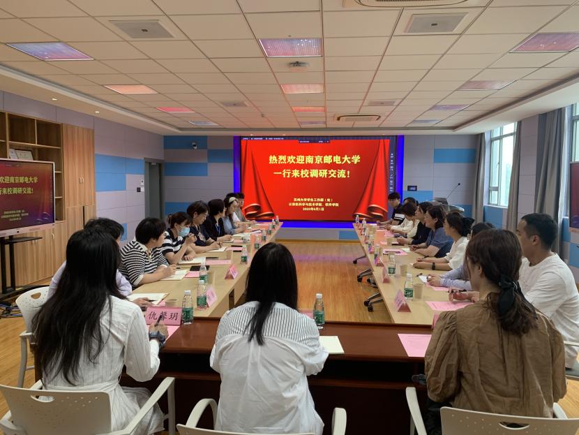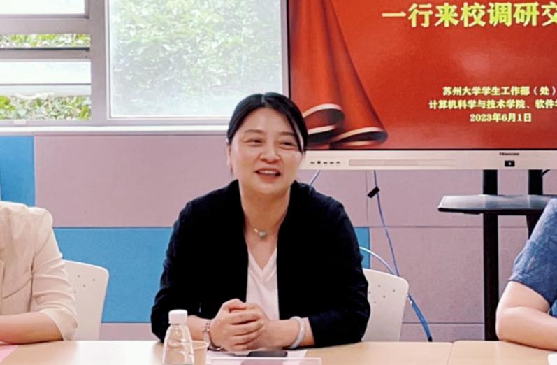 6月1日上午,我院学工队伍同物联网学院联合开展学生工作调研交流。我院党委副书记、副院长王小露,物联网学院党委副书记、副院长徐欣娅带队赴苏州大学调研,苏州大学学生工作部(处)副处长宋海英,思想政治教育办公室主任罗丙蕊,敬文书院党委副书记、副院长胡萱,计算机科学与技术学院党委副书记、副院长李恩秀等热情接待我校调研团队。