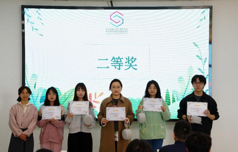 学院党委副书记、副院长刘星,分团委书记葛丹,辅导员老师宋文秀、刘少康向获奖同学颁发奖状和奖品并合影留念。