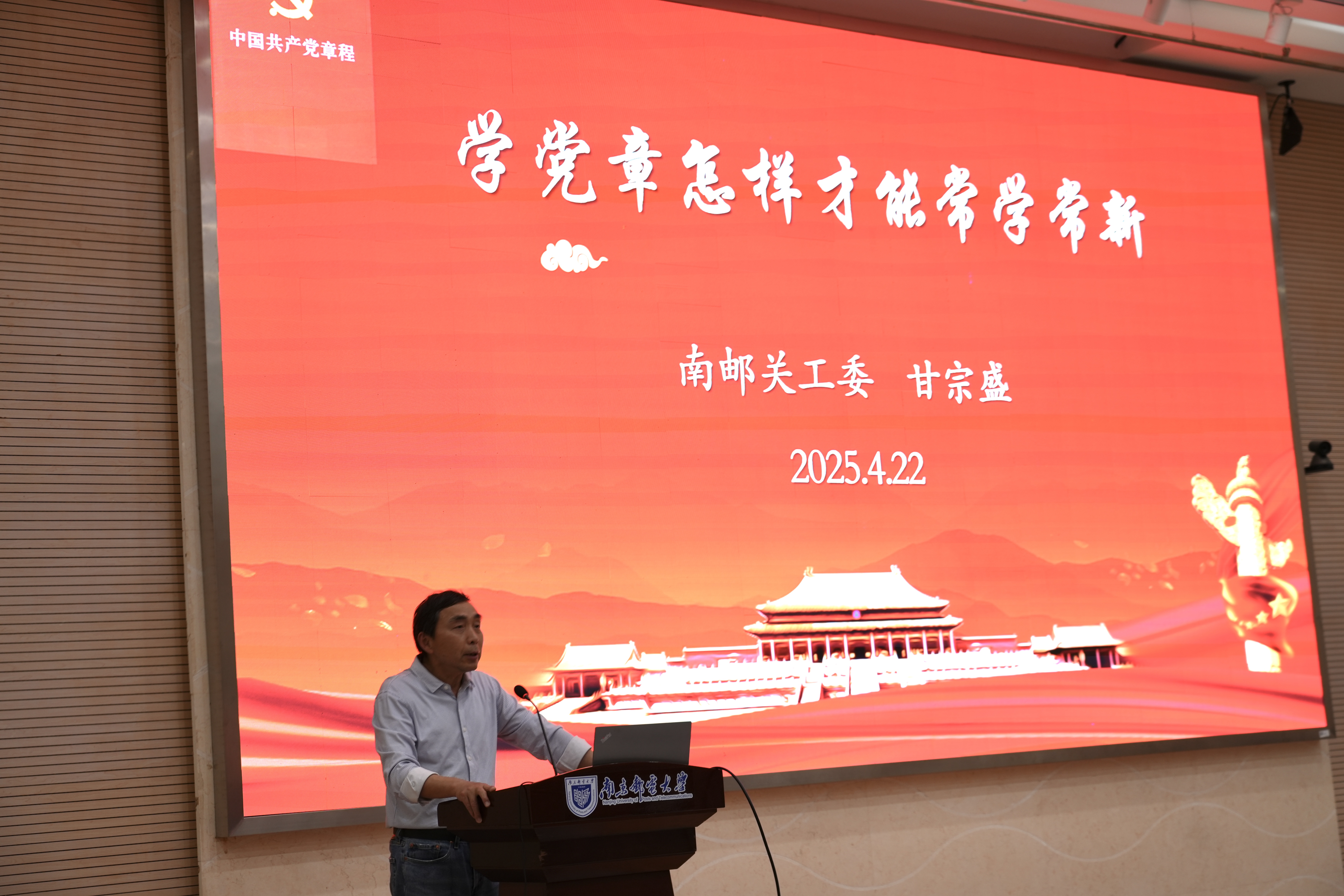 甘宗盛老师以《学党章怎样才能常学常新》为题展开授课。甘老师从党章的演进脉络切入,为学员们深刻阐释了党章作为“党的根本大法”的核心要义。他指出,要运用“古今中外法”全面理解党章内涵,要借鉴习近平总书记学习理论的方法巩固学习成效,真正做到学思用贯通、知信行统一。他提出党章“常学常新”的实践路径:一是原原本本学,认真研读党章原文,从党章的字里行间感悟先辈的坚定信念,筑牢信仰根基;二是联系实际学,将党章要求转化为服务群众、推动发展的实际行动,以此提升自身能力,破解本领恐慌;三是与时俱进学,要紧跟时代步伐,在科技创新、网络空间治理等新领域积极践行党员担当。